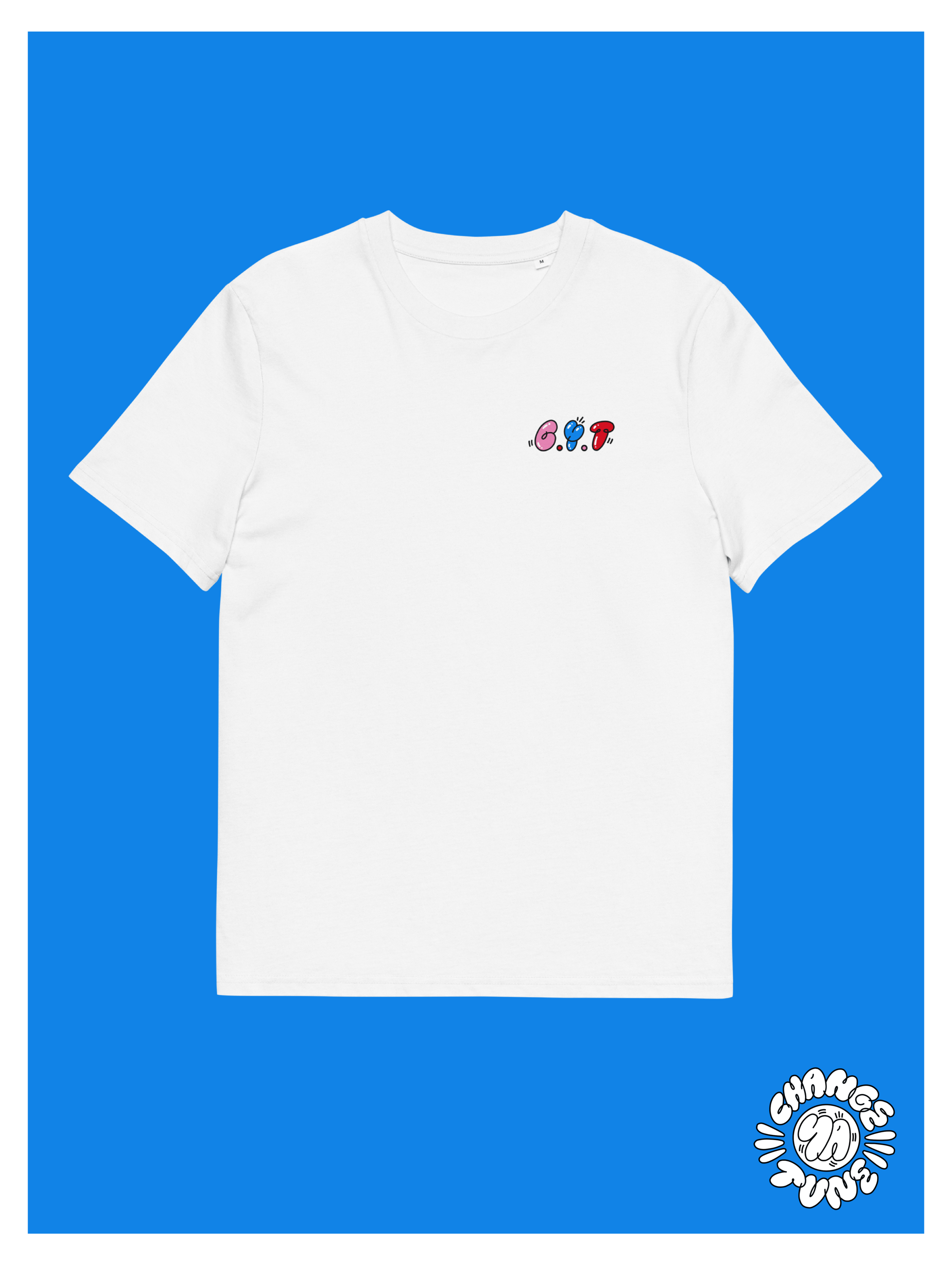 A plain white canvas, but not plain at all. Organic cotton, spun right, cut regular. Soft on the skin, easy on the planet. Wears in, not out.